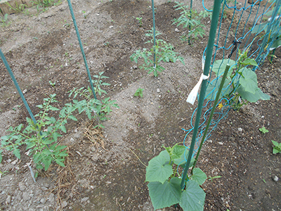 ピリカの畑について - 令和元年5月初旬に、ケアピリカみさとの敷地内にある畑にジャガイモ、ピーマン、ナス、インゲン、ミニトマトの苗を植えました。