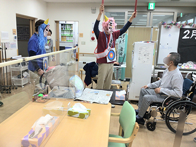 バレンタインデー - 今回は看護学生さんが実習できていました。ということもあり、看護学生さん考えてくれたボーリングゲームを開催し、おやつレクでは蒸しパンチョコレートを作りました。学生さんも利用者さんもとても喜んでいただけて良かったです!馴染みのないバレンタインもみんなと過ごすことで楽しさがましますね!