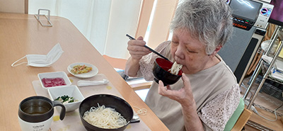 外食ツアーに行ってきました。 - 5月の行事は昼食レクリエーションとして、焼うどんを皆さんで作って食べました!皆さん「美味しい」「焼うどんなんて久しぶり」など喜んでいただけました。