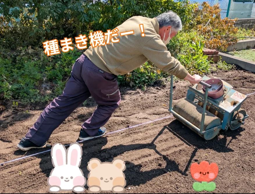 農家さんは種まき機を持参され小松菜の種を植えてくれました✨