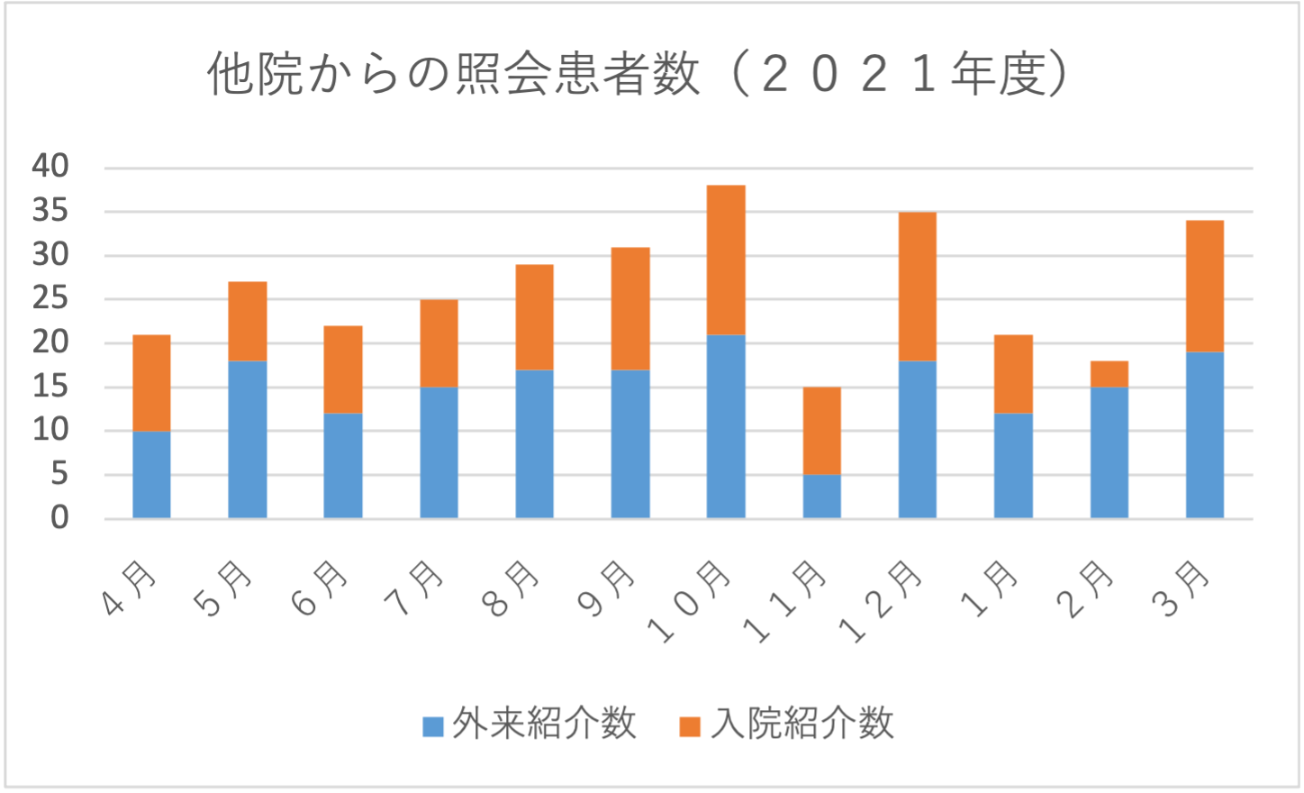 | 外来紹介数 | 10 | 18 | 12 | 15 | 17 | 17 | 21 | 5 | 18 | 12 | 15 | 19 | 179 |