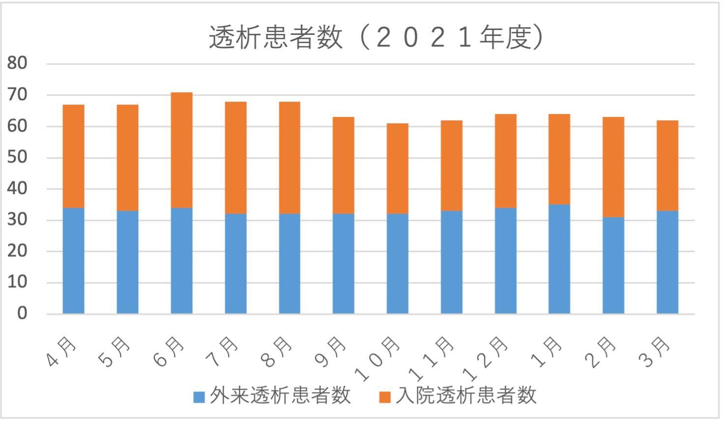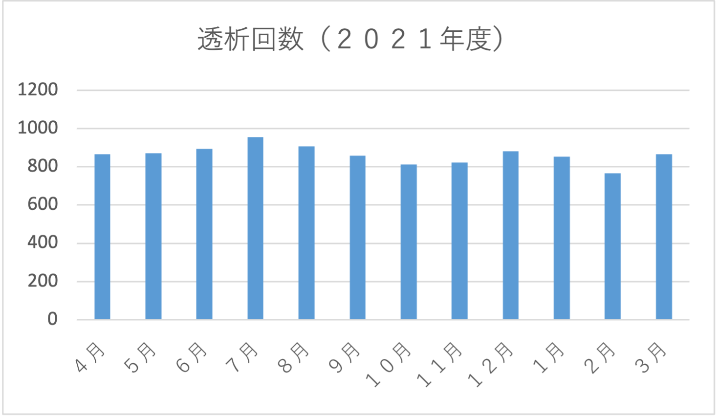 | 透析回数 | 866 | 871 | 893 | 955 | 906 | 858 | 811 | 822 | 881 | 854 | 767 | 865 | 10349 |