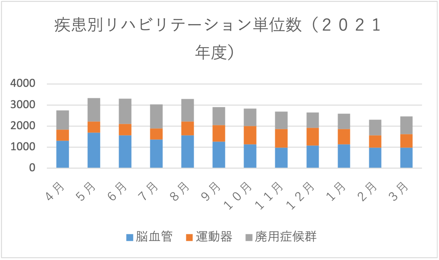 | 廃用症候群 | 914 | 1102 | 1197 | 1145 | 1073 | 855 | 829 | 826 | 738 | 721 | 745 | 845 | 10990 |