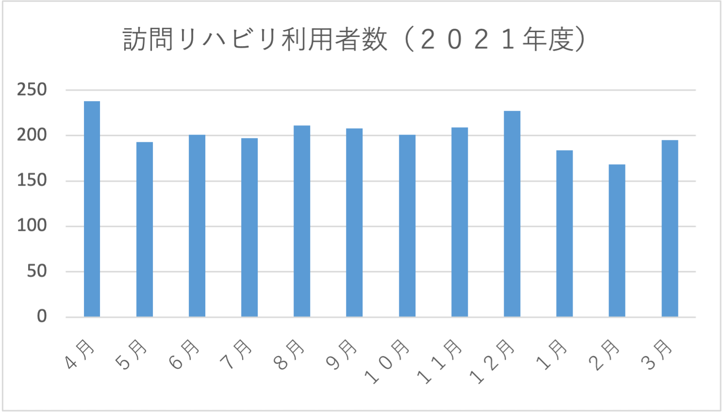 | 訪問リハビリ | 238 | 193 | 201 | 197 | 211 | 208 | 201 | 209 | 227 | 184 | 168 | 195 | 2432 |