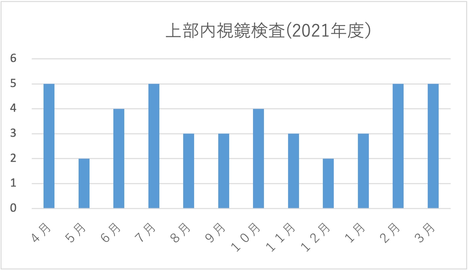 | 上部内視鏡検査 | 5 | 2 | 4 | 5 | 3 | 3 | 4 | 3 | 2 | 3 | 5 | 5 | 3.7 |