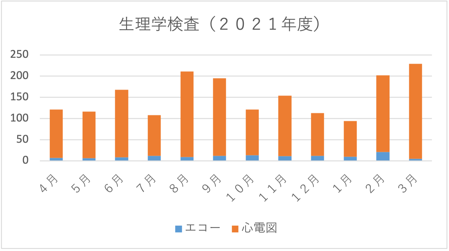 | 心電図 | 114 | 110 | 160 | 96 | 202 | 183 | 108 | 143 | 101 | 84 | 181 | 224 | 1706 |