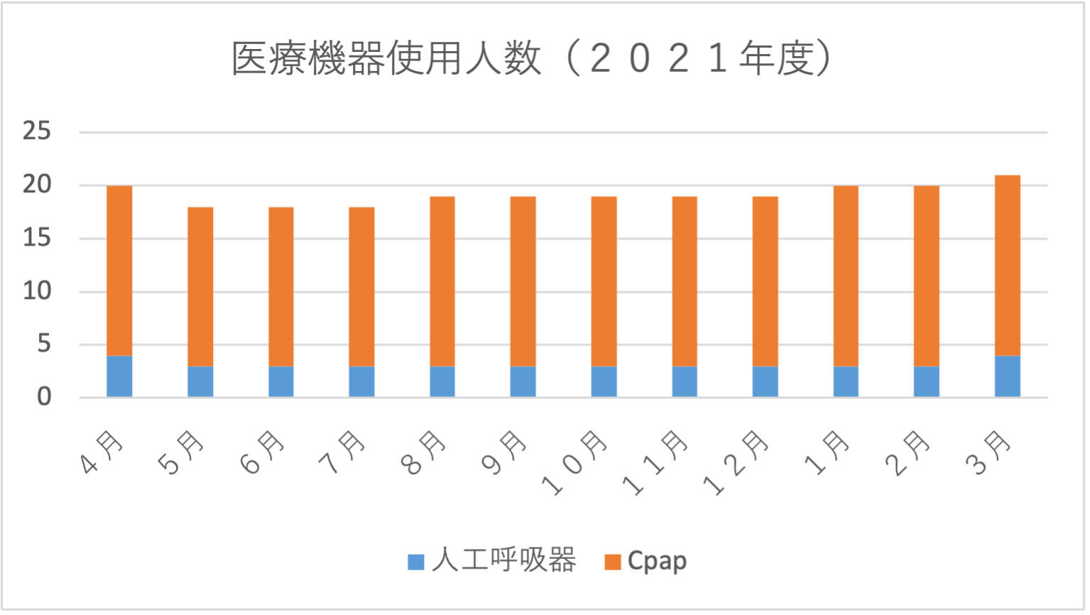 | 人工呼吸器 | 4 | 3 | 3 | 3 | 3 | 3 | 3 | 3 | 3 | 3 | 3 | 4 | 38 |