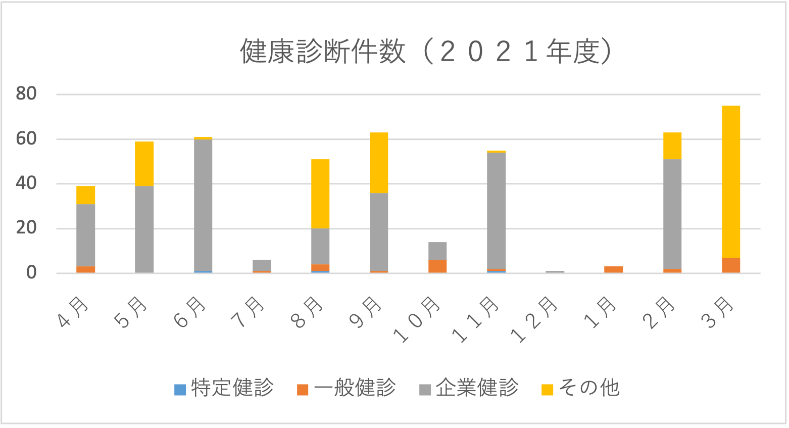 | 一般健診 | 3 | 0 | 0 | 1 | 3 | 1 | 6 | 1 | 0 | 3 | 2 | 7 | 27 |