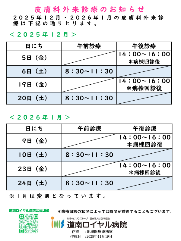 土曜午後・日曜・祝祭日・年末年始12/30午後〜1/3