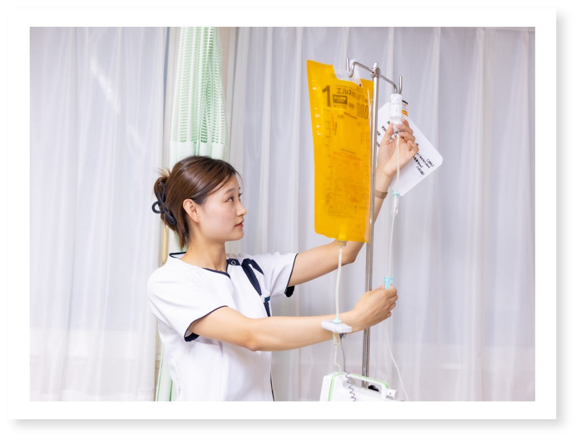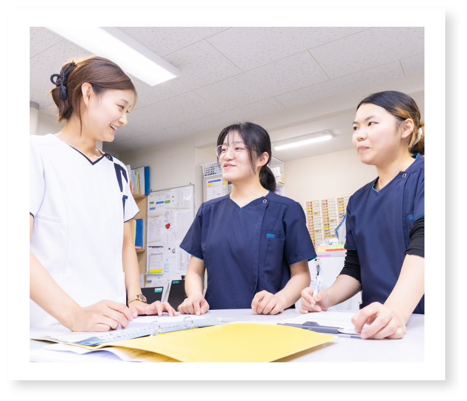 私たちは、地域医療が展開できるように自分で考え判断し行動できるように看護職員を育てたいと考えています。