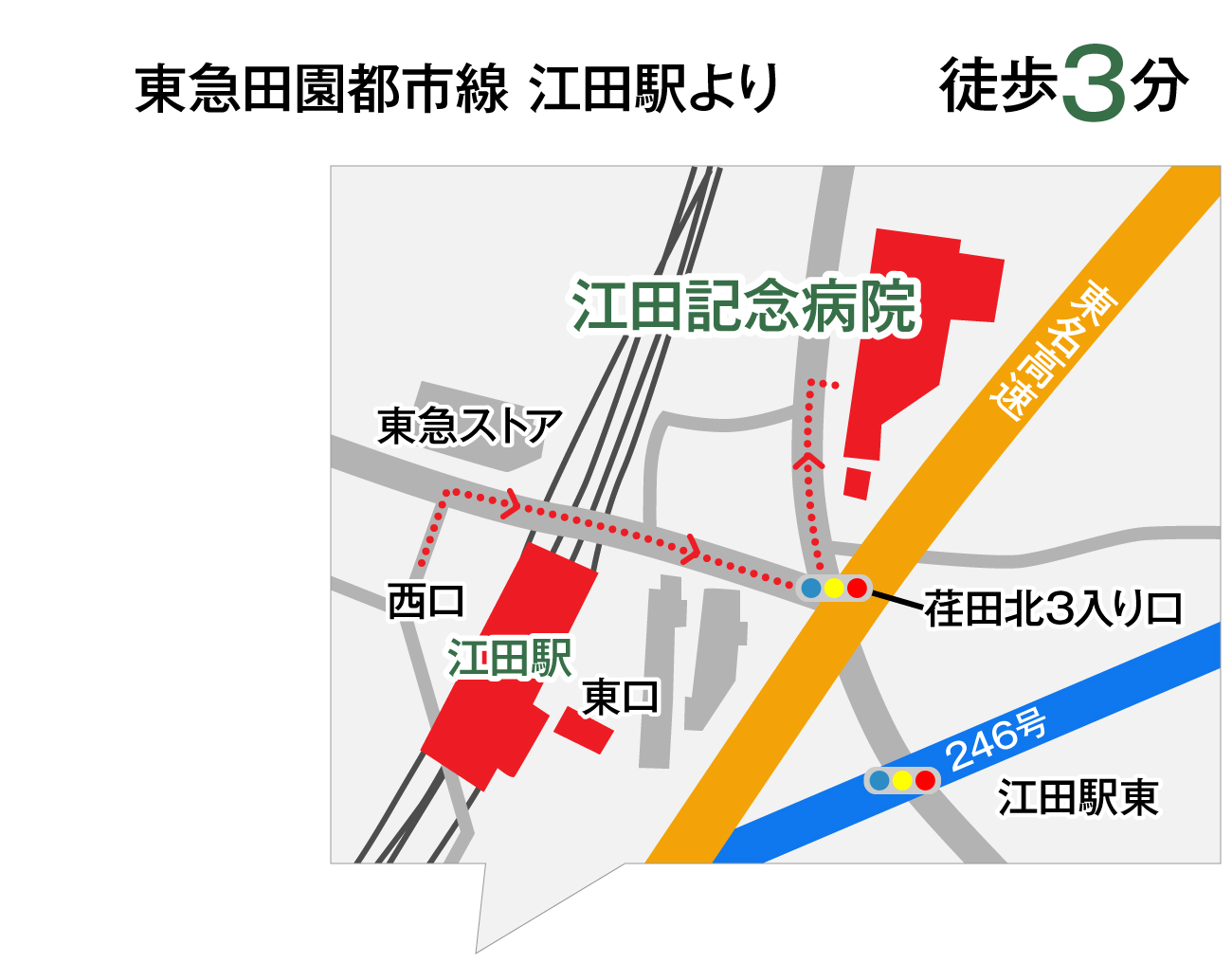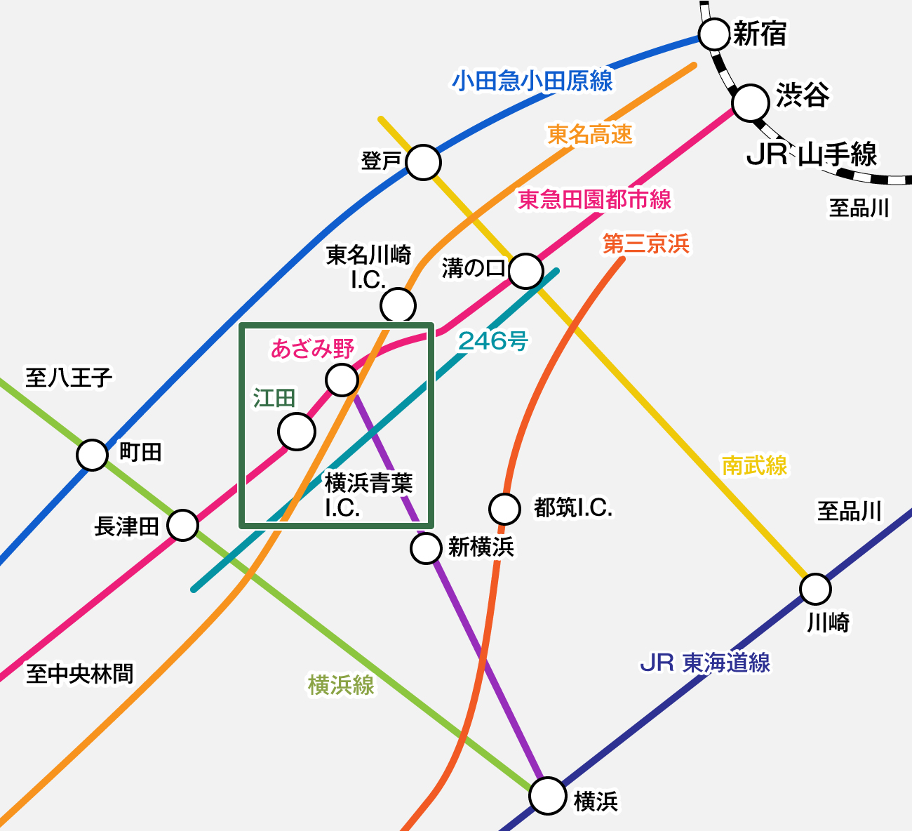 東急田園都市線「江田駅」より徒歩3分(渋谷駅から30分、横浜駅から35分)
