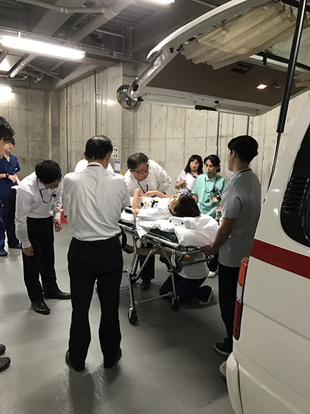この度あらためて、職員向けに救急車ストレッチャーの使用方法について訓練を行いました。