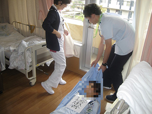 昨年度に引き続き、今年は嘔吐物処理の実技指導を全職員に対して実施。知識の習得だけでなく、当院の認定看護師の指導のもと実践を通して感染予防意識とスキルの向上を図りました。安全で質の高いケアの提供につながれば幸いです。