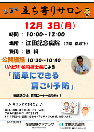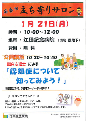 地域包括支援センター通称“江田地域ケアプラザ”から依頼を受けまして、