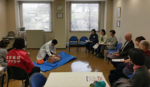 模型を使っての、AEDの操作方法のレクチャーの際に、なぜなのか?という理由を添えて