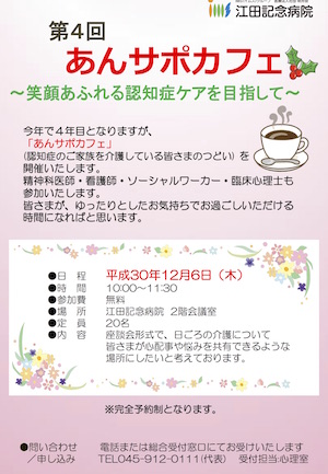 2024年11月18日に、当院あんしんサポートチームが主催する「あんサポ認知症カフェ」を開催します!