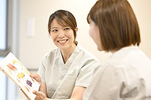 栄養食事指導では、患者さまのライフスタイルに合わせた行動目標を一緒に考え、生活習慣病の予防や改善に向け一緒に取り組んでいきます。