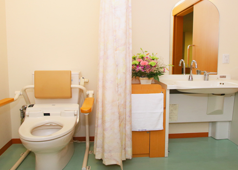 車イス対応のゆとりあるトイレは、清潔感溢れるウォシュレット。
