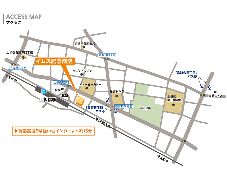 常盤台 ・ 上板橋 ・ 中板橋 ・中台・ 西台 ・ 若木・ 前野町 ・徳丸・ 桜川 ・ 東新町