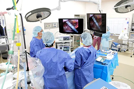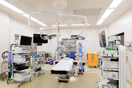 十分に広いスペースで最新の麻酔器、電気メス、腹腔鏡機器などを装備しています。