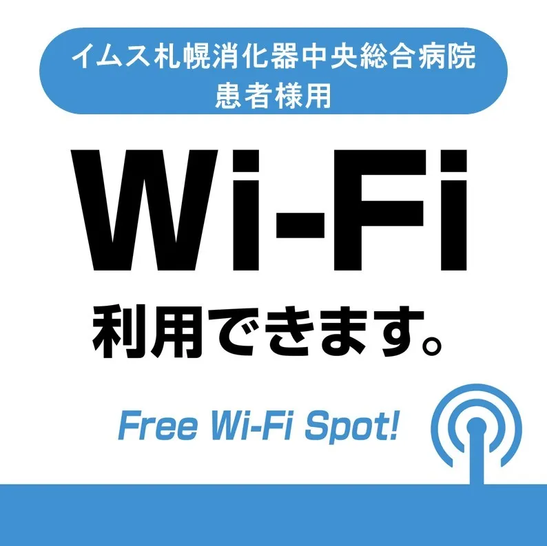 当院では病院を利用する皆様に、診察の待ち時間や入院中の生活を快適に過ごしていただくためにWi-Fiが無料でご利用いただけます。