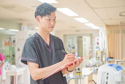 男性看護師は皆やさしいので、居ると場が和みます。患者様の中には、男性看護師を息子や孫のように思ってくださる人もいて、それがヘルスケアにもつながっています。これまで看護師は女性の職場という印象がありましたが、男性も活躍することで、より幅広い看護ができると感じています。