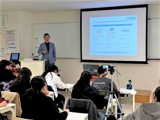 三瓶さんは今回「つなぐ」という言葉をたくさん使われていました。これはファスナーのつなぐという意味,カスタマーとサプライヤーをつなぐという意味などたくさんの意味があるとわかりました。看護師も医者と患者をつなぐ大切な役割を担っています。仲介になりかけ橋となることが求められ,より質の高い看護を提供するためにも「つなぐ」ことはとても重要だと考えました。またLINEXは時代の流れに適応した会社形態をしていて常に新しい価値創造への挑戦をしています。IT化の発達で,様々なもののスピードが加速する中,時代の流れを察知し,合せることが大切だと思いました。目標をもち,常に挑戦することで夢中になり常に成長できると学びました。 (A.M.)