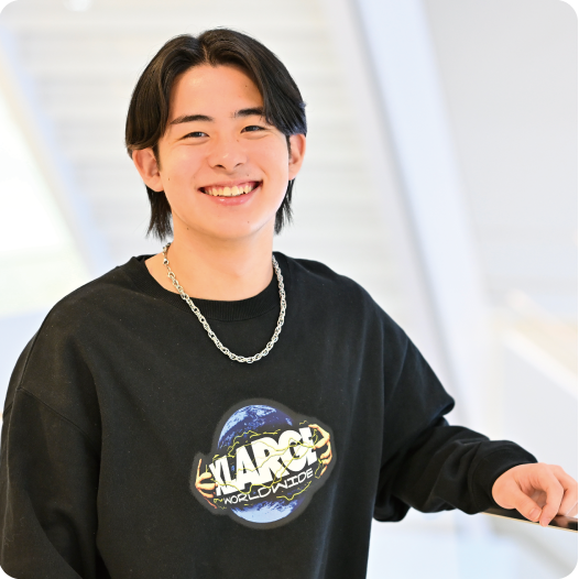 入試区分が多く、学校関係者推薦で受験できるから。高校で柔道部の部長などを務めてきたので、自分の良い点をアピールできることに魅力を感じました。学校見学で驚いたのは、校舎がきれいで明るいこと。先生方も優しく感じがよかったので、楽しく学べると思いました。