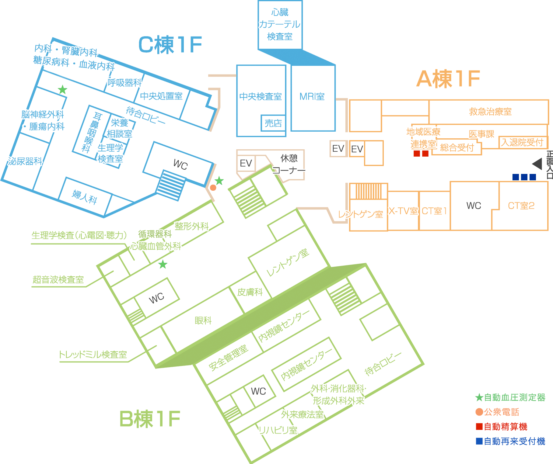 | C棟 | B棟 | A棟 |