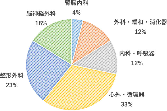 ・脳神経外科・整形外科・内部障害系疾患(呼吸器・循環器疾患)を中心に様々な疾患に介入させていただいています。