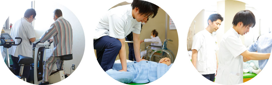 理学療法とは病気、けが、高齢、障害などによって運動機能が低下した状態にある人々に対し、運動機能の維持・改善を目的に行われる治療法です。 理学療法の直接的な目的は運動機能の回復にありますが、日常生活動作(ADL)の改善を図り、最終的にはQOL(生活の質)の向上をめざします。 さらに当院では、なぜ運動機能が低下したかを多職種間で連携を図り、同じことを繰り返さないことを目標としています。