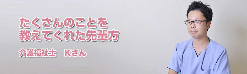僕は「初任者研修」という初歩的な資格だけを取ってこの仕事を始めたので、「介護福祉士の資格を取るまでは、絶対に、何があっても学んでやっていこう」という気持ちがありました。3年間学んで初めて受験資格が得られるので、そのためか、気がついたら3年経っていた…という感じですね。全く知らない世界でやっていくと決めて、3年間勉強を続けて、ひとつの資格を取得することができた時は、充実感もあってとても嬉しかったです。今まで先輩方にたくさんのことを教えてもらい、助けてもらって資格を取ることができたと感じているので、これからは僕と同じような立場の後輩へ、教えてあげたり助けてあげながら、一緒にやっていきたいですね。