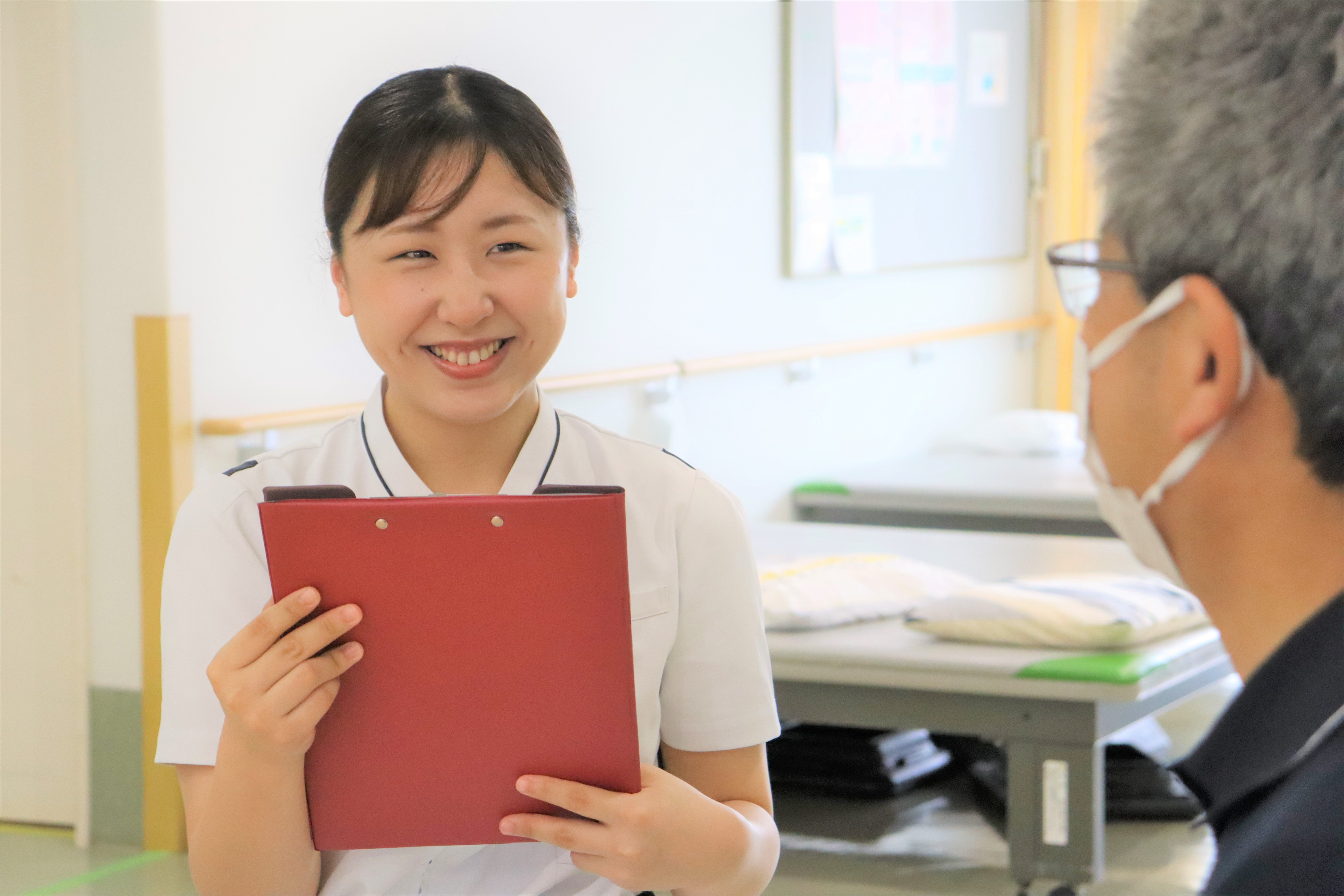 当院の看護部は「笑顔と愛のあふれる病院」という病院理念のもと、患者さま一人ひとりの人生に寄り添い、心のこもった看護を提供することを理念としております。リハビリテーション看護をはじめ、地域の皆さまの健康を支えるため、職員一丸となり全力で取り組んでおります。