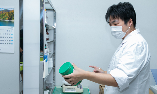 薬剤部では、外来・院内の内服調剤を中心に、注射調剤やDI業務、ICTなどチーム医療への参加を行っています。 回復期リハビリ病棟が病床のほとんどを占める当院では、患者さまの薬物治療を安全に継続するために、持参薬監査から当院薬への切替に際して薬剤師の処方提案を行っている他、剤形の工夫を凝らすなど、患者さまの負担がより少なくなるような提案を行っています。