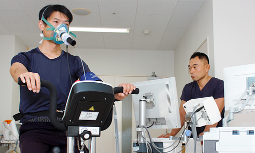 また、患者様ひとりひとりに安全で効果的な運動強度を計測できる、心肺運動負荷試験装置を導入しております。その結果をもとに、安全面に最大限の配慮を行いながら最大の効果が得られるアプローチをさせていただいております。