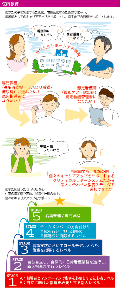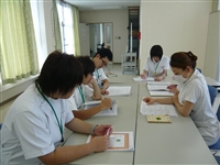 7月1日(金曜日) 16時30分~19時で ステージⅠ対象の「夜勤業務オリエンテーション」研修が行われました。参加者は13名で、講師はC-3病棟師長の横溝典子師長でした。 内容は、講師による夜勤の具体的な業務内容の講義の後、「夜勤帯における患者様の様々な変化に対し、どのように対応していくか」(・・例えば、オムツ交換時に嘔吐した患者様を発見したらどう対応するか・・など)をグループワークで話し合いました。 受講者は、活発に意見を出し合い、有意義なグループワークとなりました。 参加した受講者からは、 ・夜勤回診時の報告方法が理解できた。 ・夜勤では自分の責任者になるので自覚を持って、もう一度薬の名前や場所を確認していきたいと思った。 ・グループワークで意見を出し合うことで、1人では解決できない事も解決できた。 ・新人だとしても看護師として責任を負うことについて再認識できた。 ・1回では覚えられないので繰りかえし行いたい。 という意見が聞かれました。 ステージⅠに該当する職員は、ほぼ卒後一年目の新人さん達です。 今月以降、プリセプターと一緒に初めての夜勤を経験する予定です。 今回の研修の学びを生かし、不安なく夜勤に入れるように、私たち現任教育担当者もサポートしていきたいと思います。 研修担当者:C-2病棟主任 蛯名恵美子