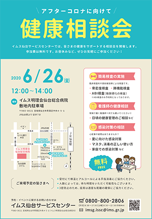 イムス仙台サービスセンターでは、イムス明理会仙台総合病院とコラボレーションし地域の皆様や近隣企業にお勤めの方向けに、健康増進・維持に役立てていただけるように健康相談会を定期的に開催しております。