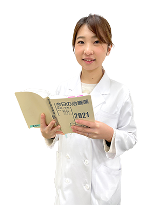 小児科病棟で服薬指導や処方箋鑑査などの業務を行っています。医師から吸入指導を依頼されたり、看護師から内服困難な児への介入をしてほしいと相談を受けたりすることもあります。小児用量について、書籍を調べたり、企業に問い合わせを行ったりして、より安全で根拠のある薬物治療に寄与できるよう心がけています。